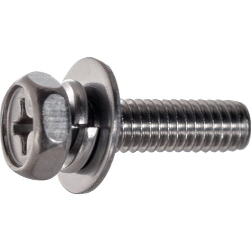 アプセット小ねじに座金を組み込んでいます。座金・ばね座金組込式の為、作業効率が向上します。締付工具は、レンチ又は十字ドライバーの両方の使用が可能です。ステンレス製の為、耐食性に優れています。 |