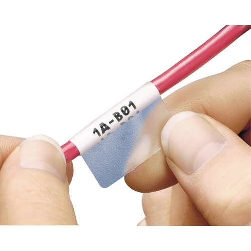 ラベルとラミネートフィルムが一体になっているので、ケーブルに巻き付けるとラベルの内容が透明ラミネートで保護されます。印字ソフト(EMPLUS−CD)を使用するとラベルが簡単に作成できます。 |