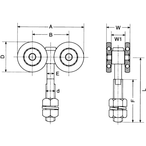 トラックレール(ハンガーレール)用のベアリング入仕様のSUS304ステンレス製の複車で耐久性に優れています。SUS304ステンレス製で耐食性、加工性、溶接製に優れています。 |
