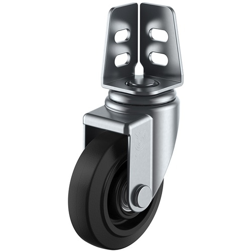 アングルへネジやボルトで簡単に取り付けることが出来ます。軽量で走行性に優れたナイロンホイルゴム車輪を使用しています。アングル式の棚や軽荷重機器運搬に。
