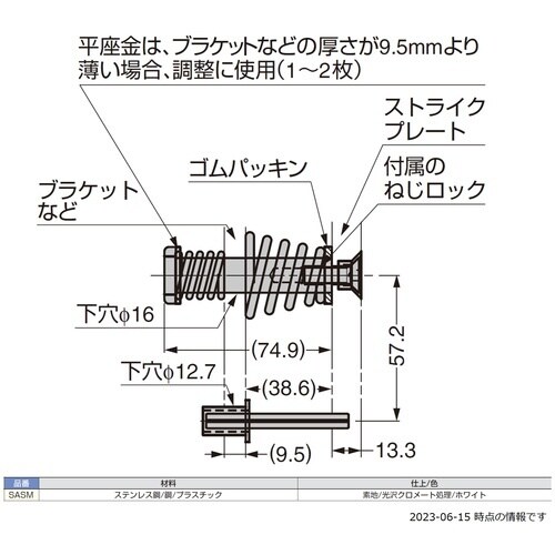 扉を閉める際、ストライクプレートに当たる衝撃をやわらげます。約490N(50kg)の衝撃まで耐えられます。重量扉や門扉に効果的です。マグナロックM32型、M62型、M82型、DM62Mと併用できます。 |