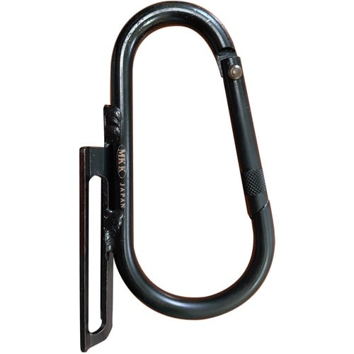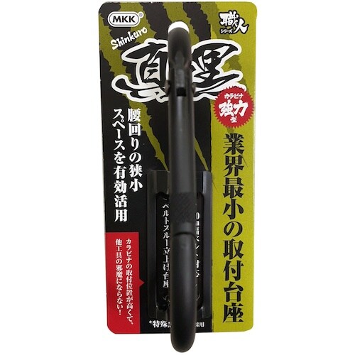 当社オリジナル設計のベルトスルー取付台座を採用。最小サイズなので、腰回りの狭小スペースに取付できます。カラビナ取付位置よりも高く、工具差しにさしてある工具に邪魔になりにくい。 |