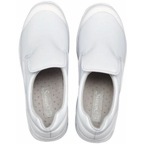 優れた耐滑性能と防菌防カビ加工で足元のストレスを解消します。靴底のパターンは食品くずで目詰りしにくく、お掃除の手間を軽減します。撥油・撥水の防汚加工アッパーです。 |