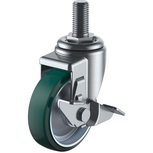 標準的な中型キャスターで重量物の運搬に数多く使用されています。ねじ込みタイプでワゴンやラックなどに適します。耐油性、耐摩耗性に優れたウレタン車輪を使用しています。台車、ワゴンなどに。 |