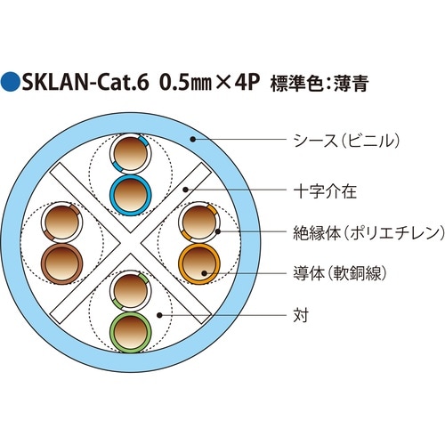 伸興電線 1000Mbps LAN対応ツイストペアケーブル SKLAN−Cat.6 0.5mmX4P(アオ)