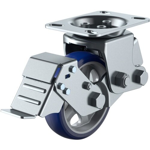衝撃や振動を吸収するだけでなく、旋回始動性が良く、作業負担を軽減しました。あっと驚く旋回性能「プレミアムウレタン」車輪を使用しています。牽引台車や手押し台車などに。 |