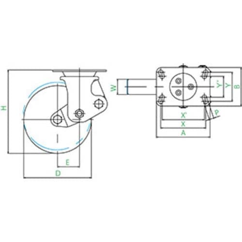 ユーエイ プレート式 固定 クッションキャスター ウレタン 車輪径150mm SKYタイプ SKY−2R型 取付寸法112×50(100×56)