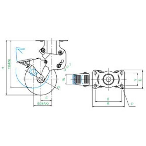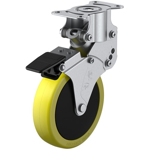 ユーエイ プレート式 固定 クッションキャスター 帯電防止ウレタン 車輪径125mm ストッパー付き SKYタイプ SKY−R−S型 取付寸法82×40