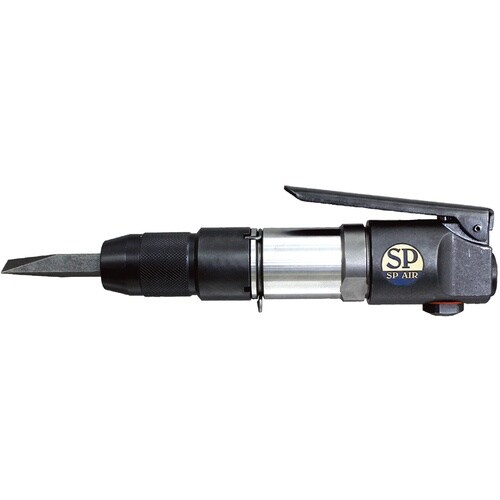 チゼルの交換が工具不要で簡単です。ハツリ・バリ取り・錆び落としや溶接部のスパッタ落としなどに。