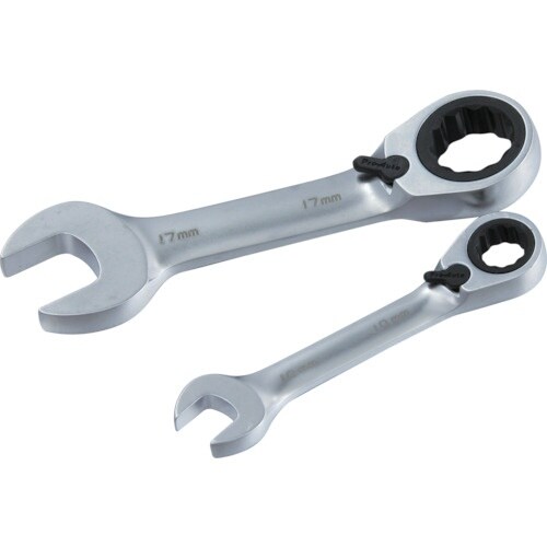 ギア数72山、送り角5度で本締め作業ができる高能率ギアレンチのオフセット型スタビータイプです。左右回転切り替えスイッチはワンフィンガーで簡単に操作できます。自動車、バイク、機械類の整備や修理作業に。