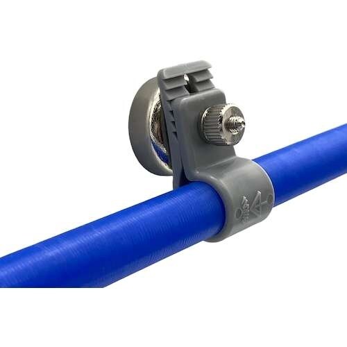歯のかみ合わせでサドル径の調整をした後、ローレットナットで手締めができます。工具レスで締め付けが可能、マグネット付きなのでビス止めが不要です。CD管・PF管・VE管・鋼管・ケーブル等の保持、固定に。