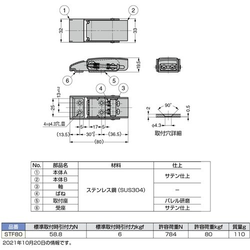 | 注意事項 | ※標準取付時、引付力にはばらつきがあります。現品にてご確認ください。 |