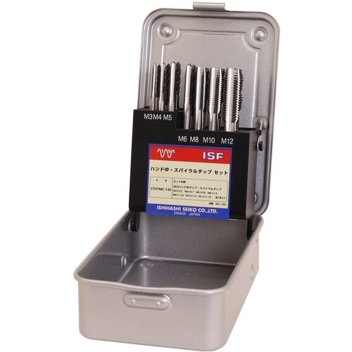 手加工用のハンドタップと機械加工用のスパイラルタップのセットです。 |