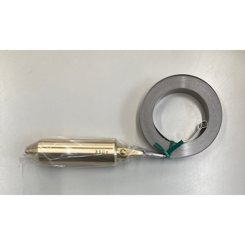 巻尺の先端に、直結式350g真鍮製分銅が付いています。交換用テープです。主にタンク内の液量測定用。 |