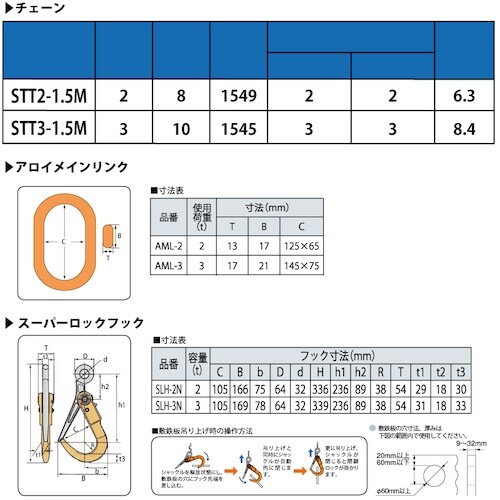 敷鉄板の敷設・撤去作業に最適です。フックの開口部が大きいので取付・取外しが簡単です。吊り上げ時、自動的に閉鎖ロックが掛かり安全確実です。 |