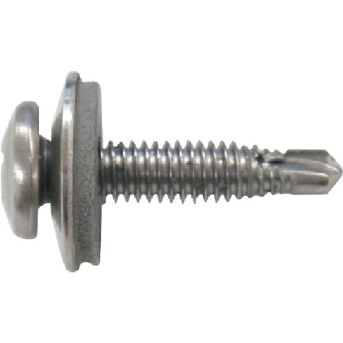 座金パッキン組込した薄板専用ドリル刃の付いた下穴不要の鉄板テクスビスです。 |