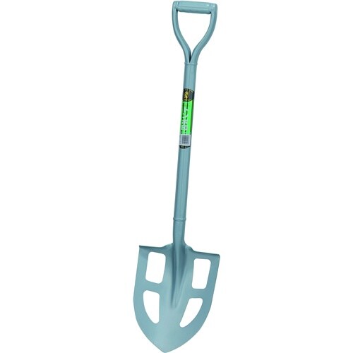 刃先はショベル鋼板(S50C)を使用し、焼き入れ・焼き戻しの熱処理済みです。柄は軽くて強いハイテンパイプ鋼を使用しています。独自の穴明加工に粘土質の土や水分を含んだ土の土離れが最適です。 |