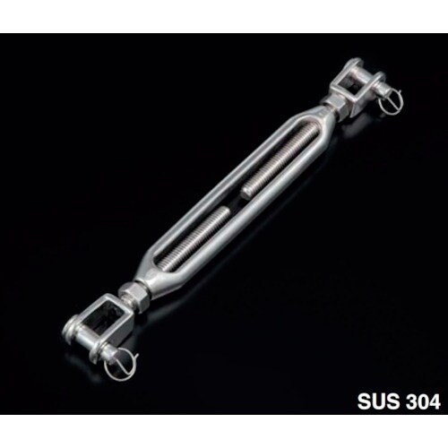 ステンレス製のターンバックルです。ワイヤロープの張り具合を調整します。
