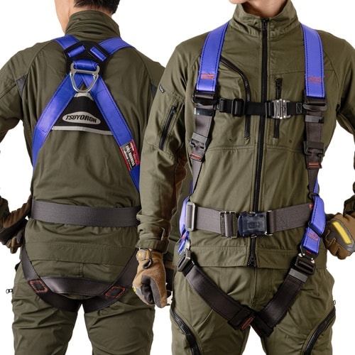 作業ベルトが標準装備となっており、現場での作業が多い方に最適です。墜落制止時の衝撃を骨盤全体で受け止め、身体保持の安定性に優れているV型腿ベルトです。