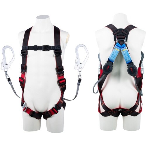 TSUYORON レヴォハーネス ツインランヤード付き ロック機構付き巻取式ワン・ハンドリトラ 黒・赤 LLサイズ 130KG対応型