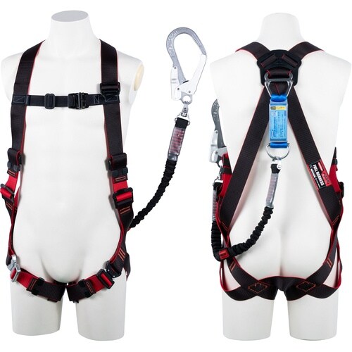 TSUYORON レヴォハーネス シングルランヤード付き 伸縮式ノビロン(BK) 黒・赤 LLサイズ 130KG対応型