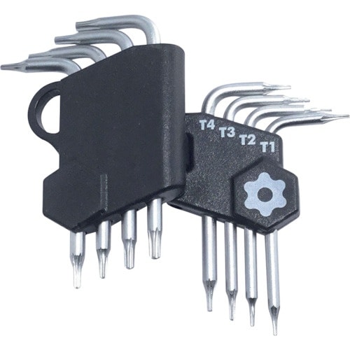 携帯電話・パソコン・ポータブルゲーム機等の精密機器に使われている6溝ネジ回しに便利な、マイクロサイズのトルクスネジ用レンチをセットアップしています。 |