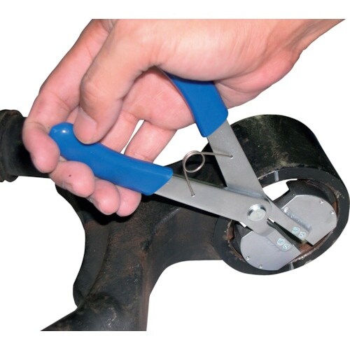 固着した汚れ、サビの取りにくい、リング溝の専用スクレーパーです。国産大型トラックのVロッドブッシュのスナップリング溝の掃除用。 |