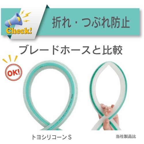 【耐熱・耐寒】−30ー150℃で使用が可能な耐熱ホースです。【ホースの折れ・つぶれ防止】金属コイルによる補強構造でホースの折れ、つぶれに強く安定的に流体を供給可能です。 |
