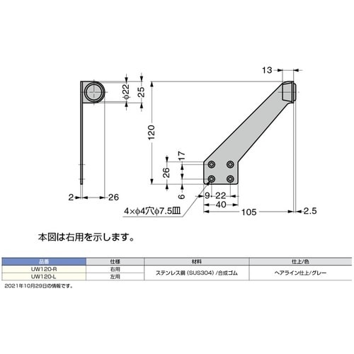 扉の上枠に取り付けるタイプの戸当りです。扉が当たる部分には合成ゴムを使用しているため、衝撃を柔らげます。 |