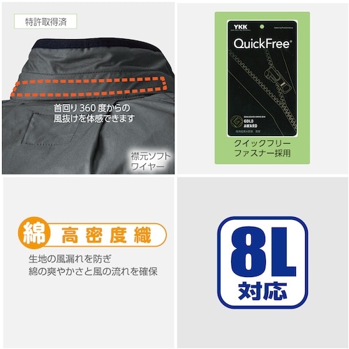 ※快適ウェア着用時は、快適ウェア専用のファン・バッテリーを必ずご使用下さい。他社商品と組み合わせて使用した際に発生する故障や事故につきましては責任を負いません。V15シリーズ以前のデバイスをご使用の場合、6L以上はV80ロングテーブルがおすすめです。V19シリーズのデバイスをご使用の場合、6L以上はV88ロングテーブルがおすすめです。服のみです。ファン・バッテリーセットは別売りです。
