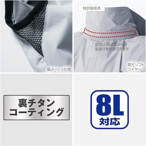 ※快適ウェア着用時は、快適ウェア専用のファン・バッテリーを必ずご使用下さい。他社商品と組み合わせて使用した際に発生する故障や事故につきましては責任を負いません。V15シリーズ以前のデバイスをご使用の場合、6L以上はV80ロングテーブルがおすすめです。V19シリーズのデバイスをご使用の場合、6L以上はV88ロングテーブルがおすすめです。服のみです。ファン・バッテリーセットは別売りです。