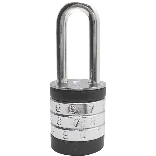解錠番号は予め設定されています。鍵なしで番号を合わせると解錠できます。番号は固定式で変えられません。吊長なので取付範囲が広いです。バッグやポストやロッカーなどの施錠に。