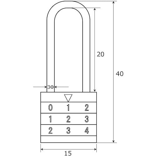 付属鍵本数(本):0 | キー番号:固定式 | 幅(mm):15 | 全長(mm):40 | ツル径(mm):3 | C(mm):20 | D(mm)…