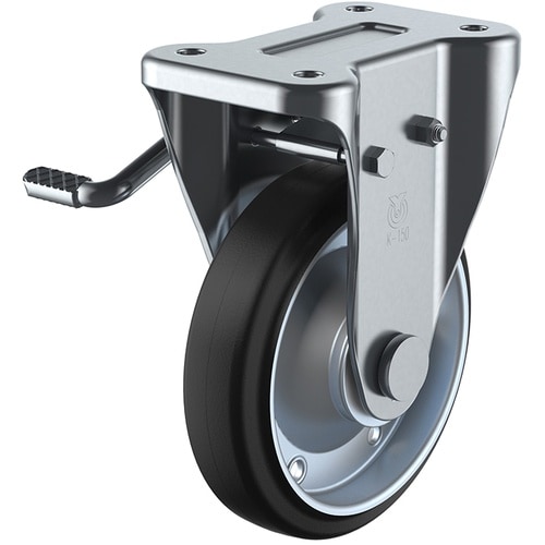 ユーエイキャスター ユーエイ プレート式 固定 キャスター 導電ゴム 車輪径130mm ストッパー付き Jタイプ KB(L)型 取付寸法100×56 A01C-7896