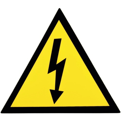 感電注意マークのラベルになります。ISO3864の規定に基づいた各種警告ラベルです。高品質のビニールフィルムに接着剤がついているので、どこにでも簡単に貼ることができます。警告ラベル。 |