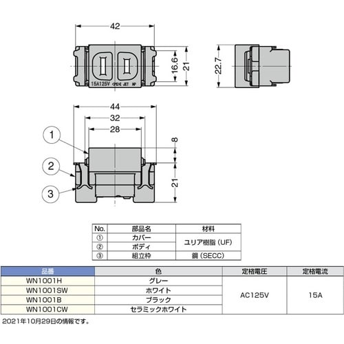 コンセントカバー・プレートに取り付けができる埋込コンセントです。 |