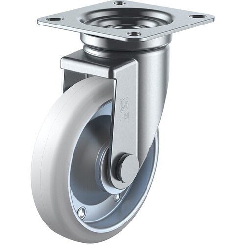 標準的な大型キャスターで、重量物の運搬に数多く使用されています。走行性、耐油性に優れた耐油ゴム車輪を使用しています。重量物の運搬に。