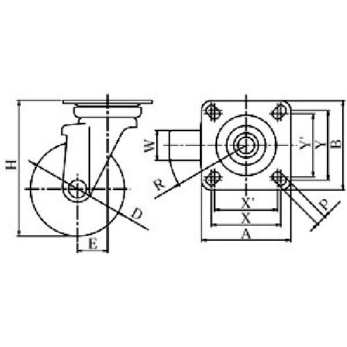 許容荷重(daN):200 | 許容荷重(kgf):204 | 車輪径D(mm):150 | 車輪幅(mm):40 | 取付高H(mm):198 | …