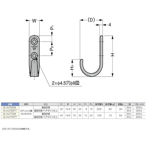 スガツネ工業 SUGATSUNE (110020938)XL−HJT70TT ステンレス鋼製フック A01C-9101