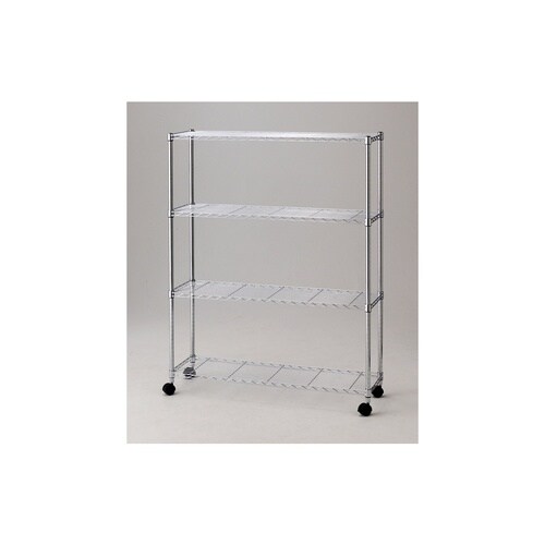 店研創意(ストア・エキスプレス) ワイヤーラック ローコスト D35cm キャスター付き H156cm 棚4段 幅121.2cm A01E-1038