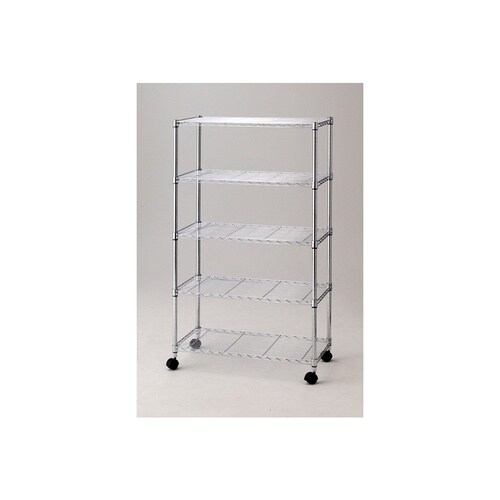 店研創意(ストア・エキスプレス) ワイヤーラック ローコスト D45cm キャスター付き H156cm 棚5段 幅90.7cm A01E-1047