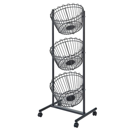スチール製のワイヤータイプの陳列什器。カゴの線材部分をビニールコーティングしているので、安全に商品が陳列できます。カゴの角度は自由に変えられます。 |