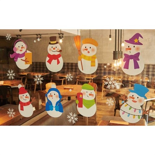 ごきげんなスノーマンがいっぱい!静電吸着で貼り剥がしも簡単。 |