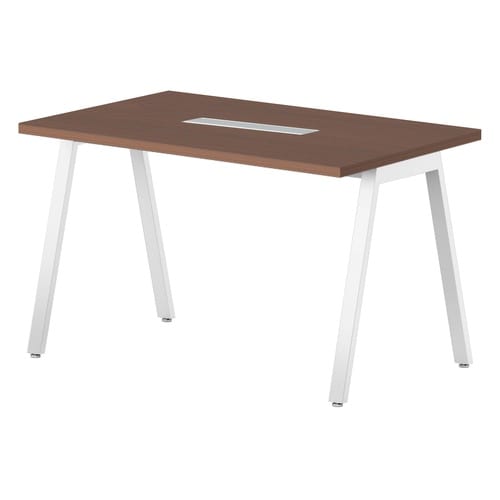 ミーティングテーブル BSYテーブル 幅1200×奥行750×高さ720mm ワイヤリングBOX付 天板/ウォールナット、脚/ホワイト BSY−H1275W−WN 1台【メーカー直送/お客様組立】