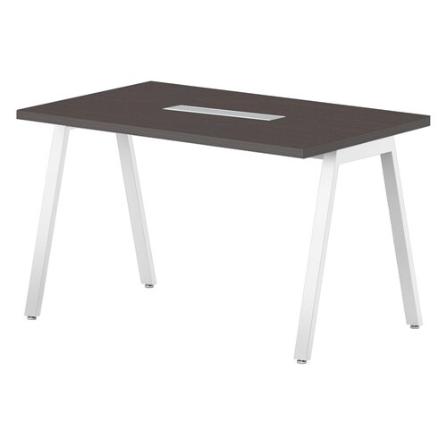 ミーティングテーブル BSYテーブル 幅1200×奥行750×高さ720mm ワイヤリングBOX付 天板/ダークウッド、脚/ホワイト BSY−H1275W−DW 1台【メーカー直送/お客様組立】