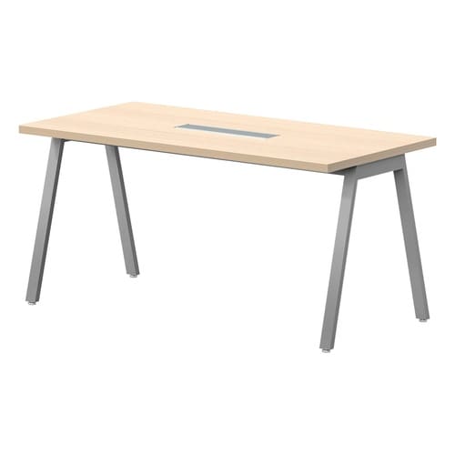ハの字脚でバランスが良く、安定感のあるミーティングテーブル。サイズのラインナップが多く、オフィスなどのオープンスペースで人気のモデルのワイヤリングボックス付きタイプ。 |