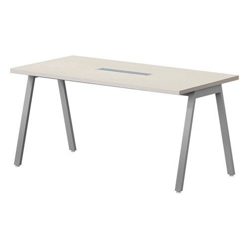 ハの字脚でバランスが良く、安定感のあるミーティングテーブル。サイズのラインナップが多く、オフィスなどのオープンスペースで人気のモデルのワイヤリングボックス付きタイプ。 |