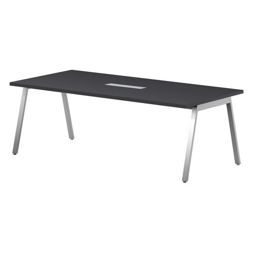 ハの字脚でバランスが良く、安定感のあるミーティングテーブル。サイズのラインナップが多く、オフィスなどのオープンスペースで人気のモデルのワイヤリングボックス付きタイプ。 |