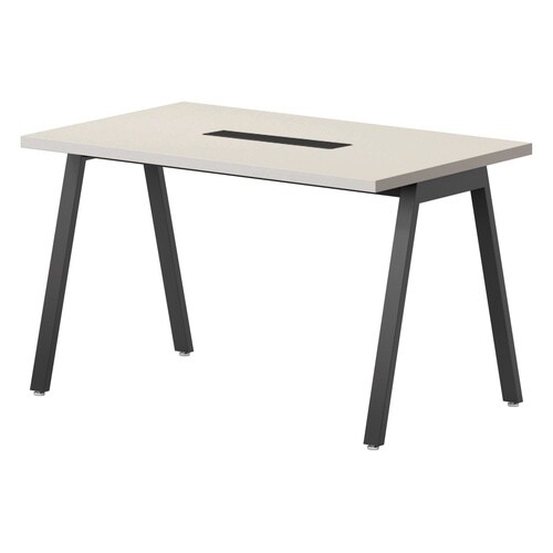 ハの字脚でバランスが良く、安定感のあるミーティングテーブル。サイズのラインナップが多く、オフィスなどのオープンスペースで人気のモデルのワイヤリングボックス付きタイプ。 |