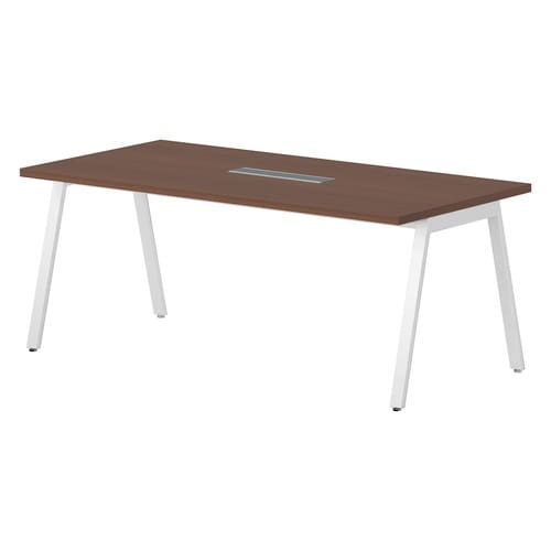 ミーティングテーブル BSYテーブル 幅1800×奥行1000×高さ720mm ワイヤリングBOX付 天板/ウォールナット、脚/ホワイト BSY−H1810W−WN 1台【メーカー直送/お客様組立】